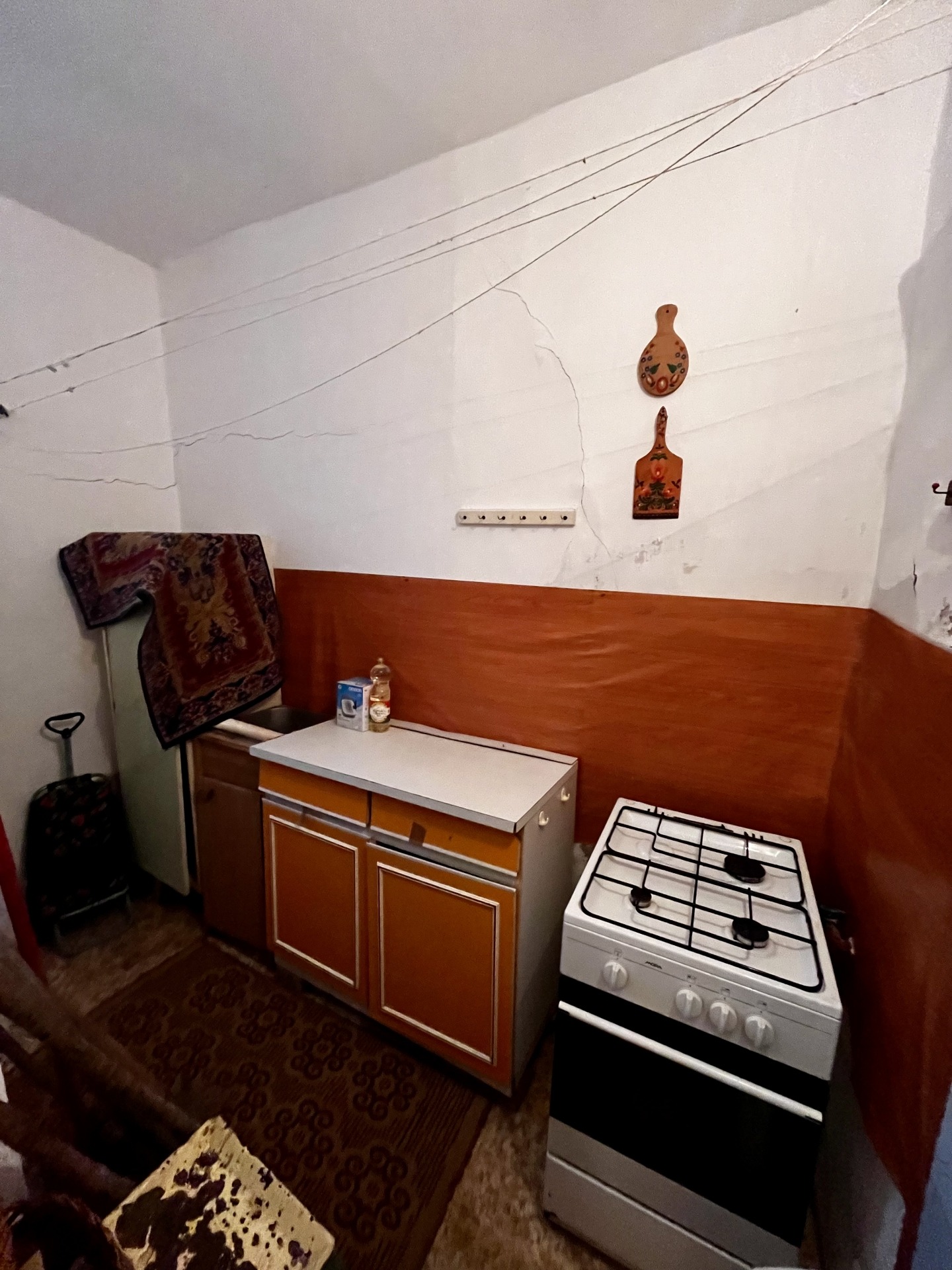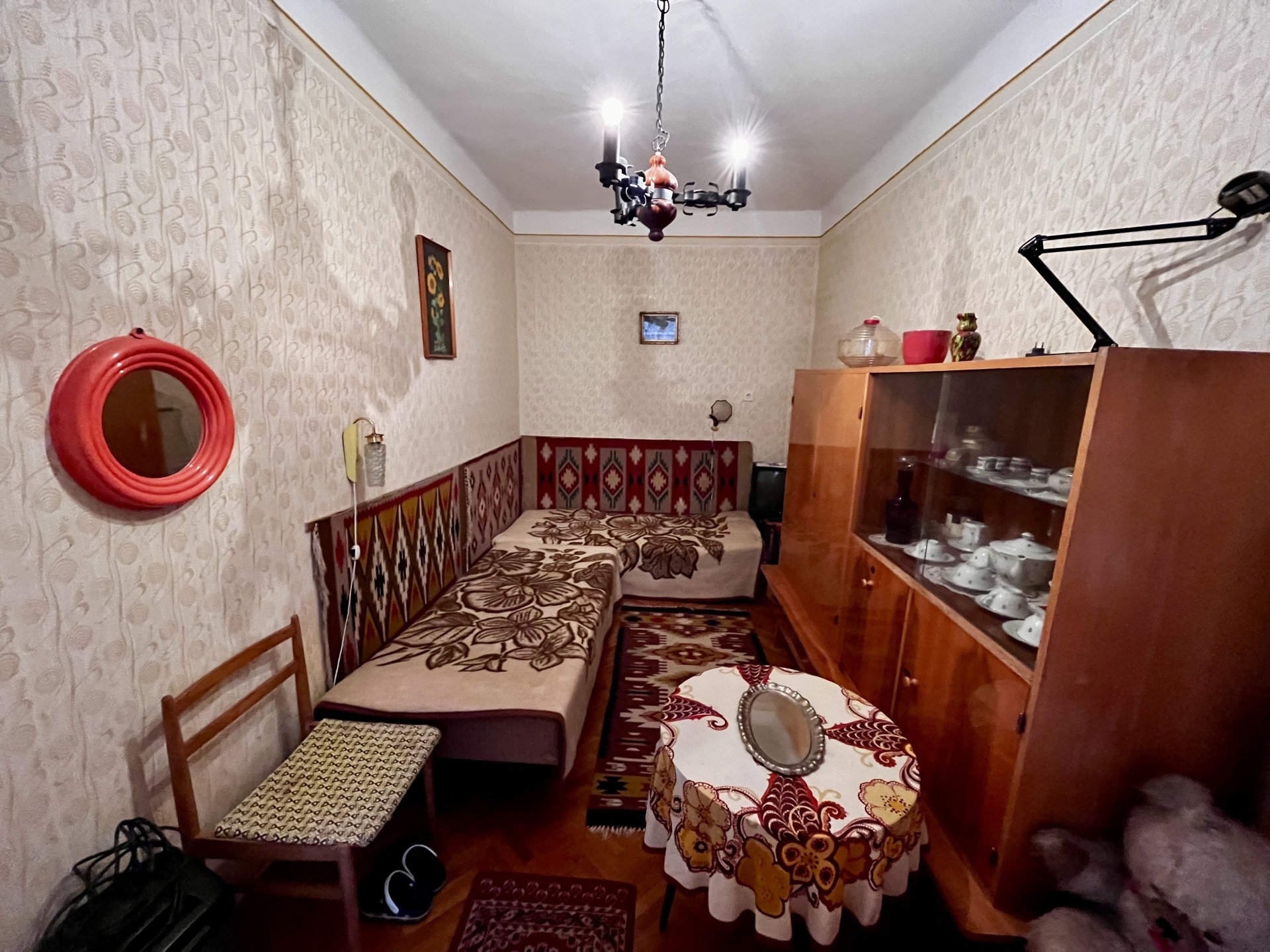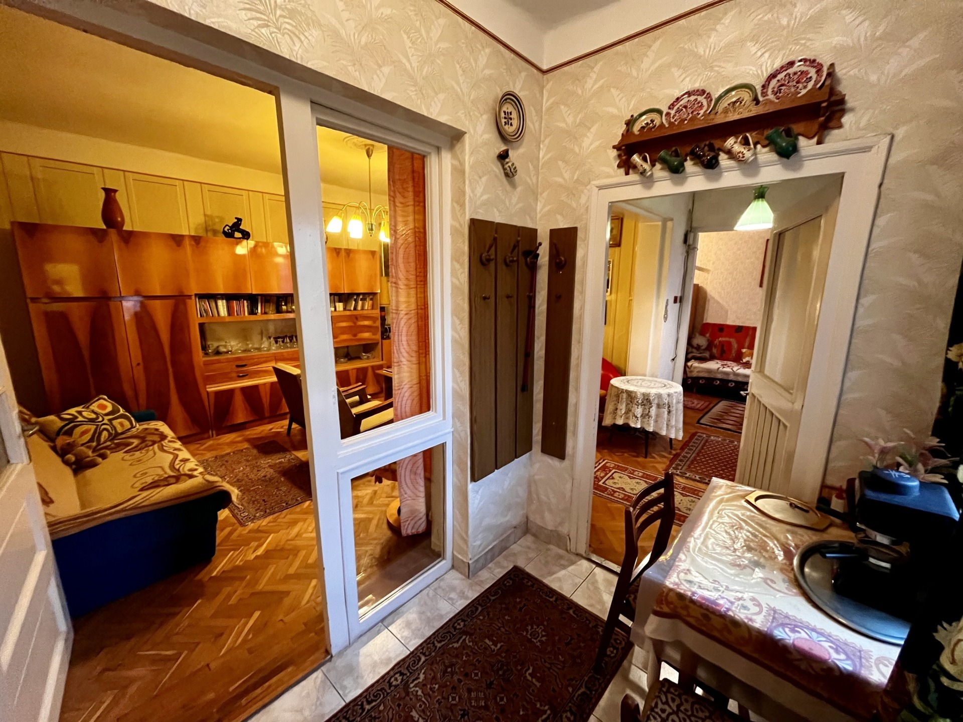 Az ingatlanban megtalálható kettő szoba (beépített szekrényekkel) egy fürdőszoba wc-vel egy konyha és egy spájz. A nyílászárók fából készültek a fűtést gázkonvektor biztosítja, járófelületei parkettával és csempével burkoltak.