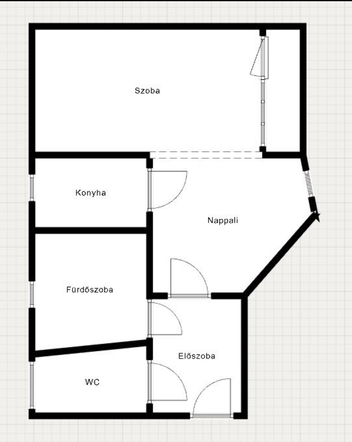 konyha szoba nappali,hálószoba,fürdőszoba(zuhanyzó)+wc külön helyiségben található és egy 2 m2 erkély.